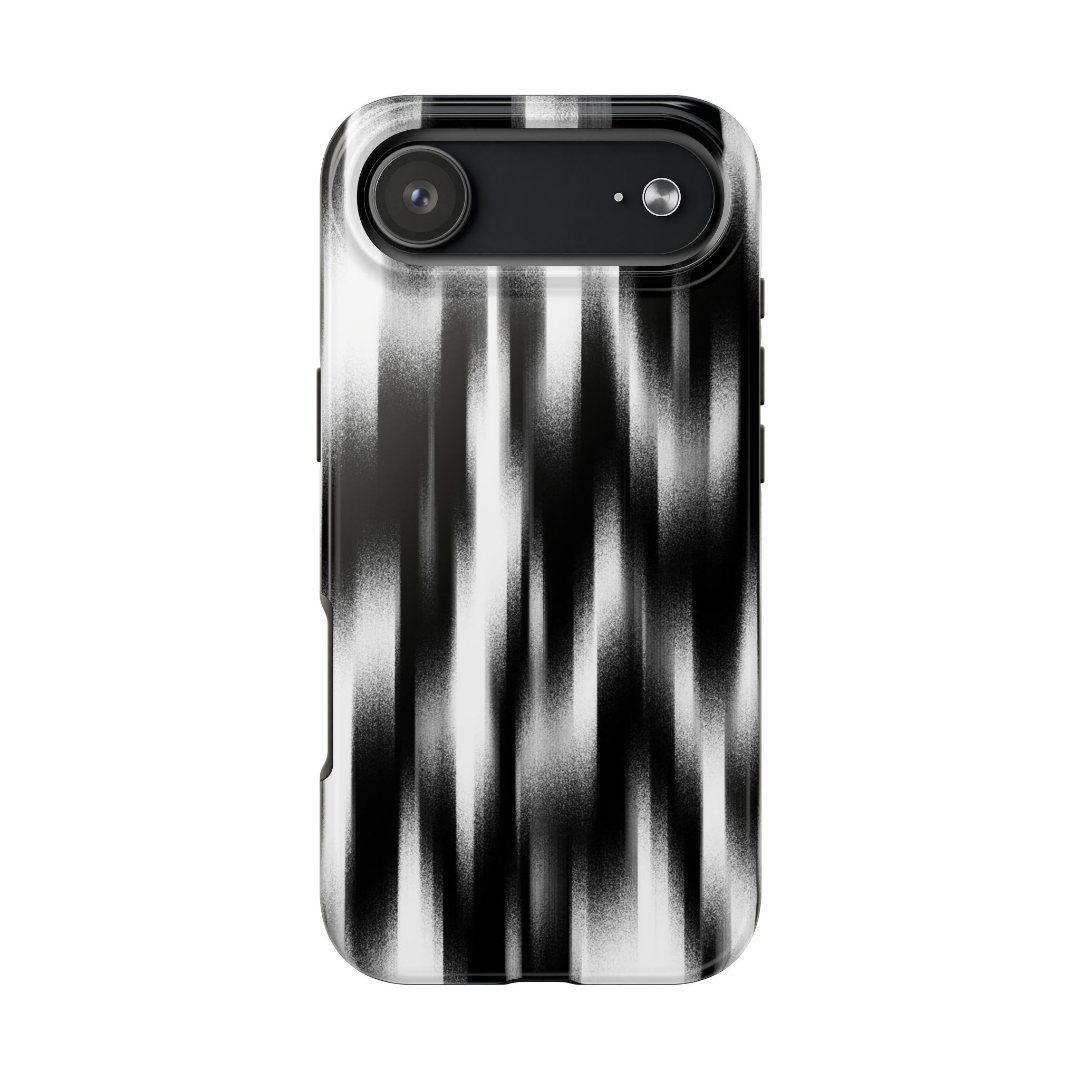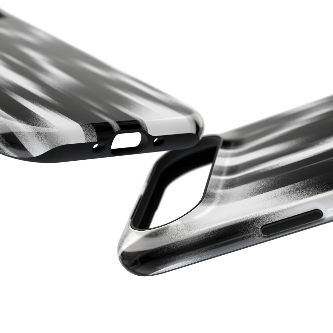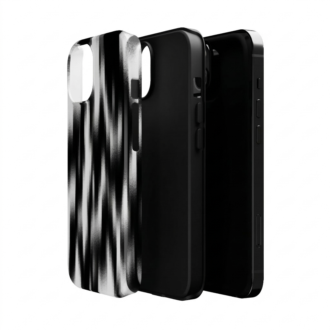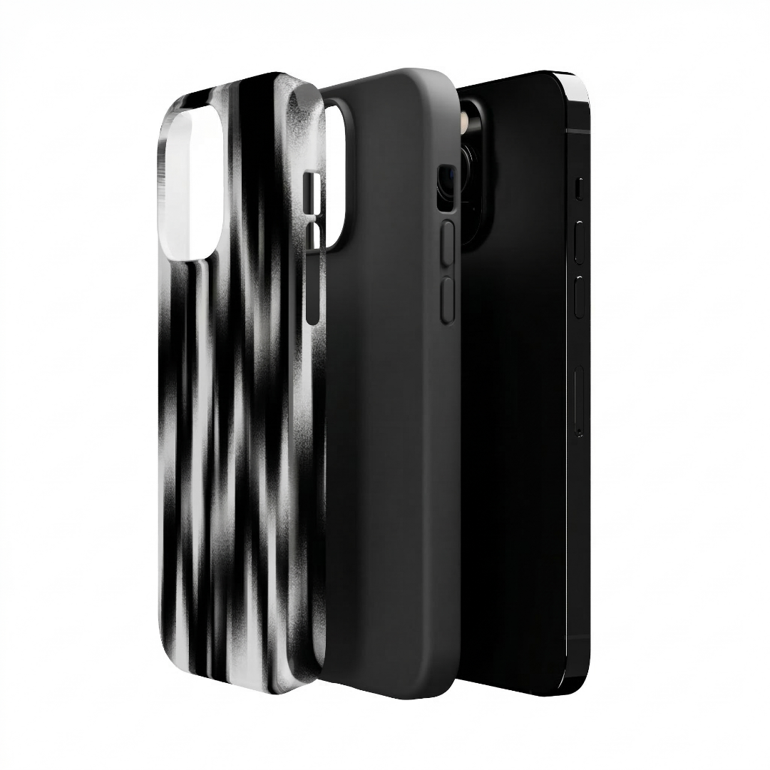 Rugged TPU inner liner for shock absorption. Hard polycarbonate outer shell with high-gloss finish. Dual-layer construction for drop and impact resistance. Raised edge lip for screen and camera protection. Tactile button covers for precise response. Multi-color graphic finish with visual depth.