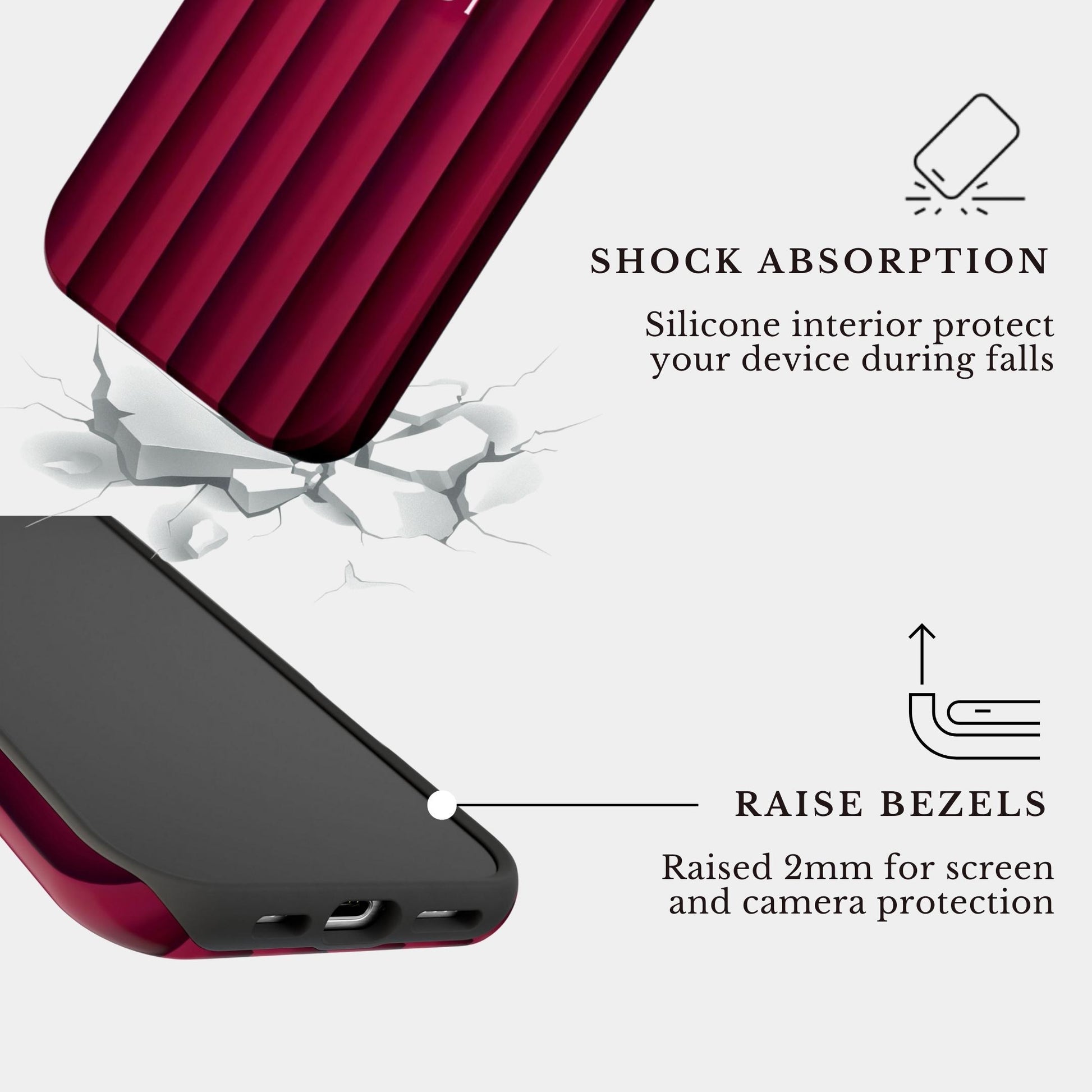| Protection | Dual-Layer Impact Absorption • Raised Front Lip for Screen Safety • Elevated Camera Bumper to Protect Lenses • Tested for Everyday Drops (Approx. 6-8 ft) |