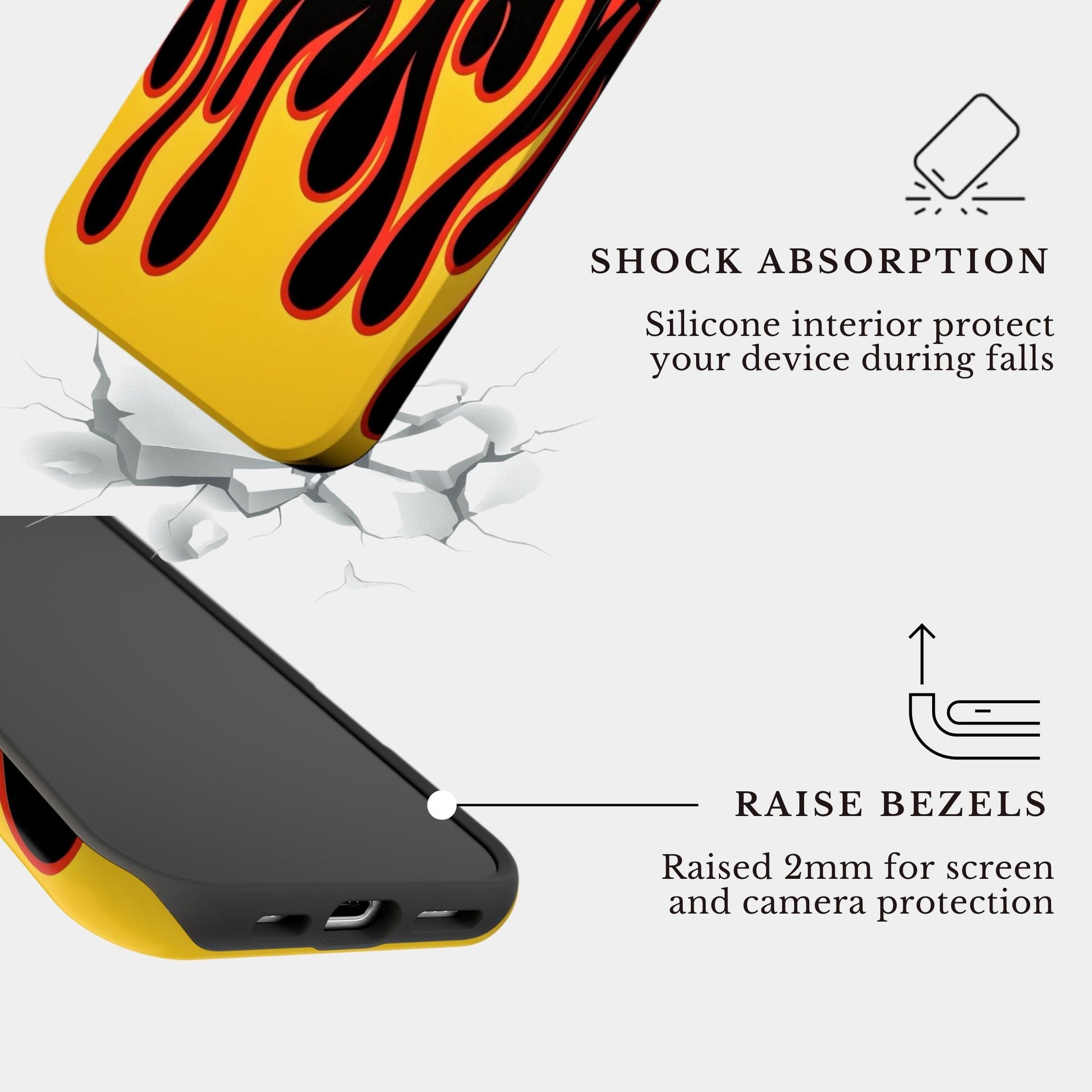 | Protection | Dual-Layer Impact Absorption • Raised Front Lip for Screen Safety • Elevated Camera Bumper to Protect Lenses • Tested for Everyday Drops (Approx. 6-8 ft) |